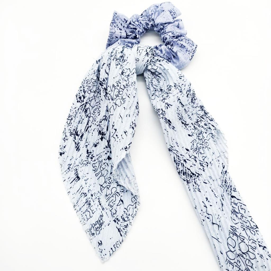 Karışık İnce Yazı Desenli Mavi Simitli Fular Toka